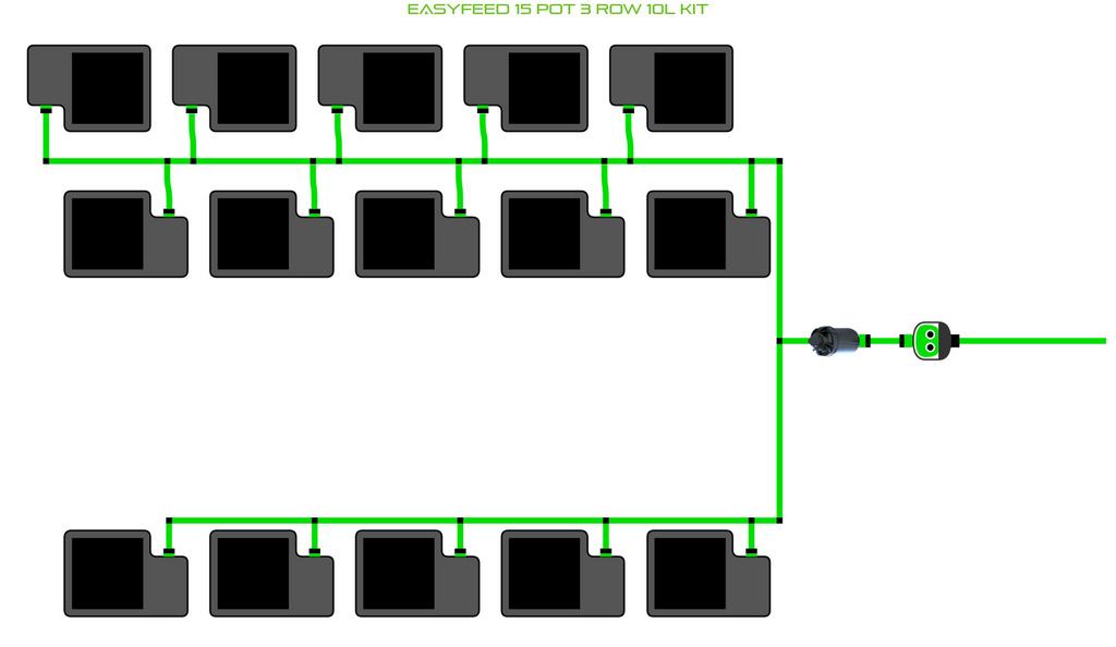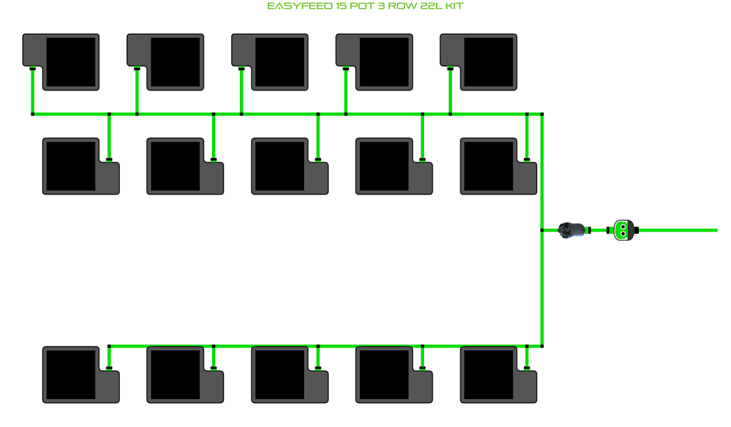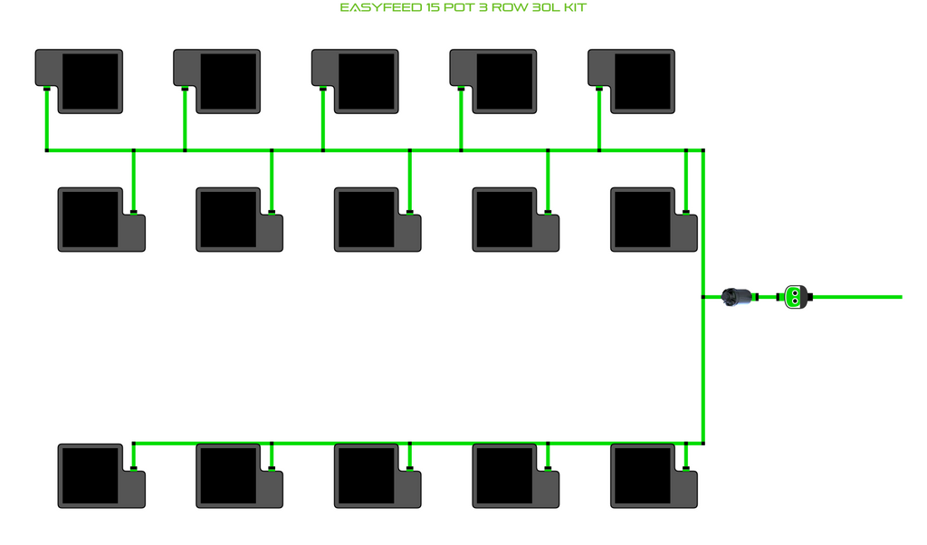 The ALIEN EasyFeed 15 Pot 3 Row Kit is available in 4 pot sizes. Easy to configure and assemble with advanced features and setup options including the ability to create an aisle in the middle of rows for complete plant access, grow 15 plants to perfection while bottom-feeding with scheduled dry-backs with this ALIEN EasyFeed Kit!