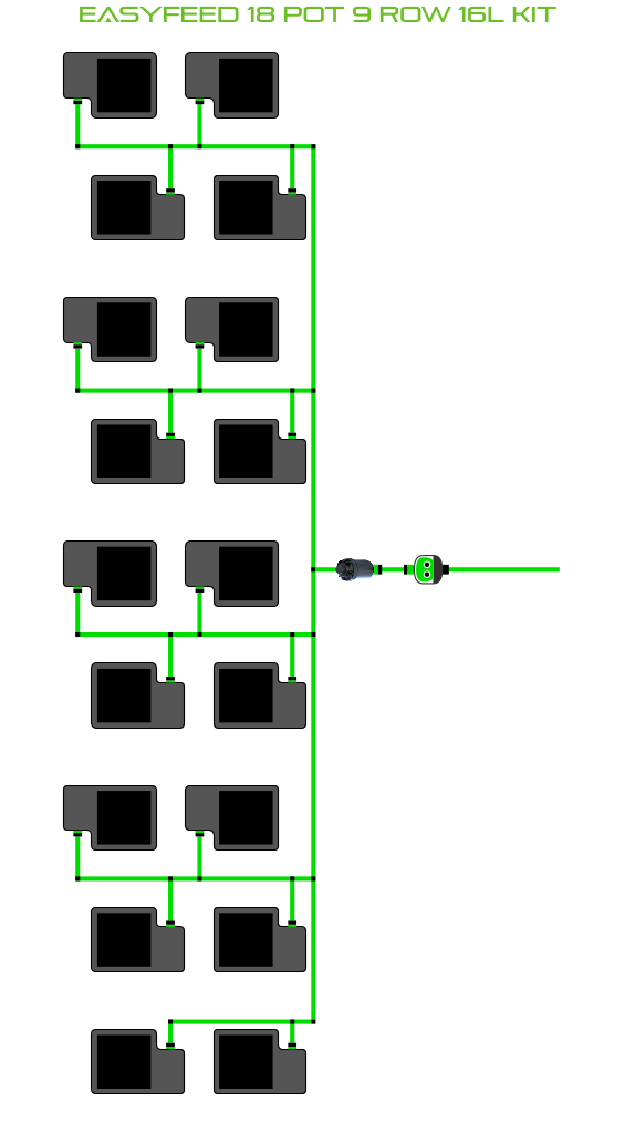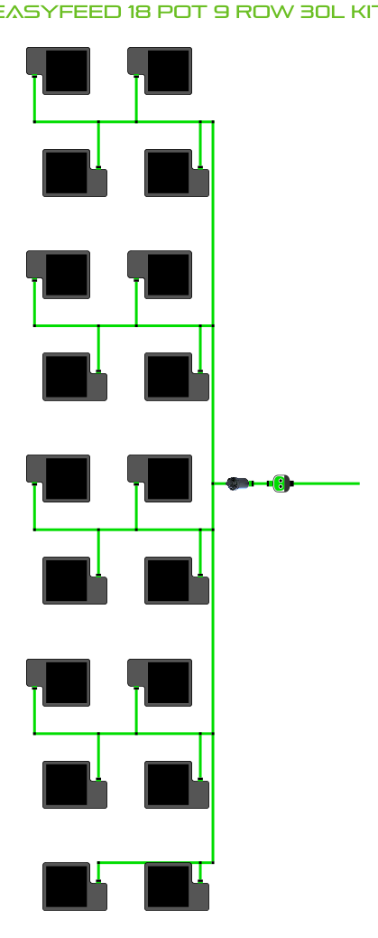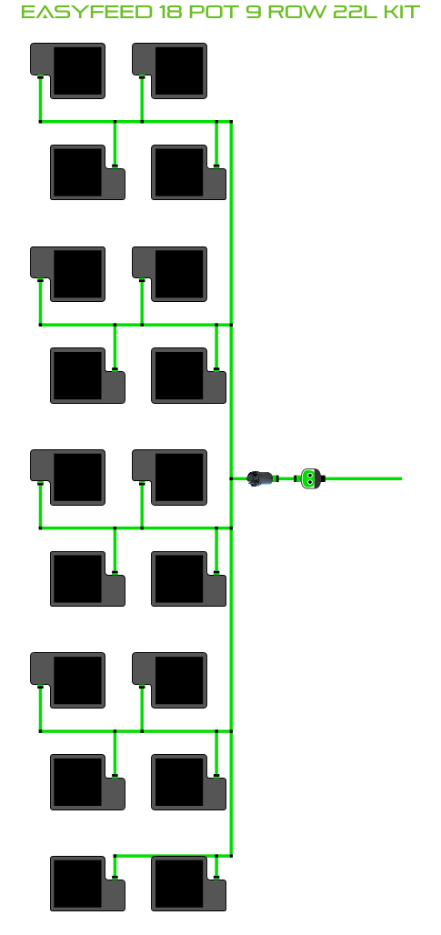 The ALIEN EasyFeed 18 Pot 9 Row Kit is available in 4 pot sizes. Easy to configure and assemble with advanced features and setup options, grow 18 plants to perfection while bottom-feeding with scheduled dry-backs with this ALIEN EasyFeed Kit!