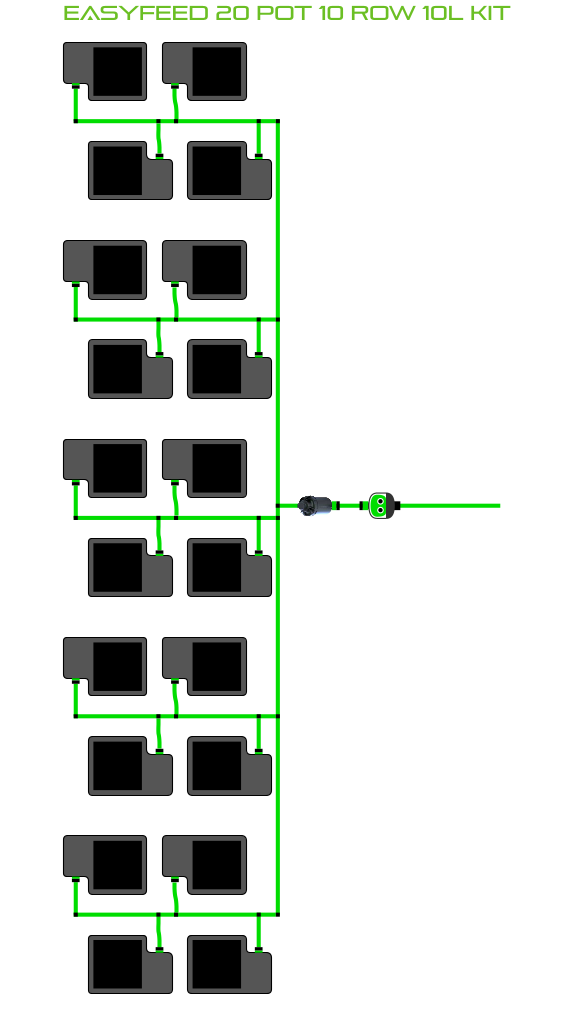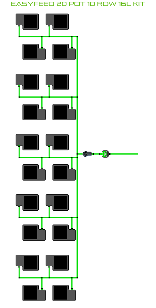 The ALIEN EasyFeed 20 Pot 10 Row Kit is available in 4 pot sizes. Easy to configure and assemble with advanced features and setup options, grow 20 plants to perfection while bottom-feeding with scheduled dry-backs with this ALIEN EasyFeed Kit!