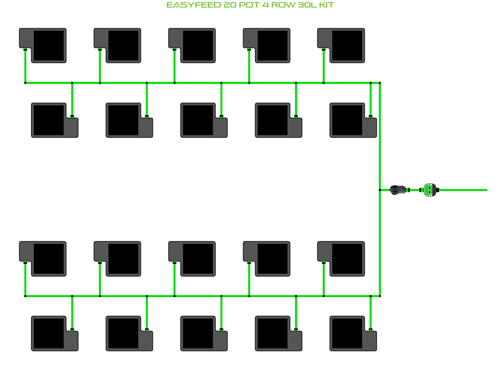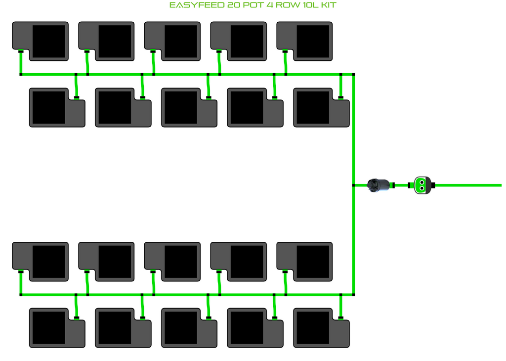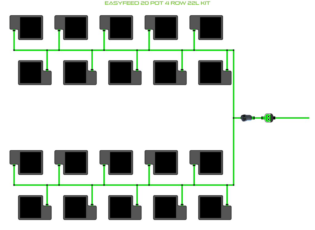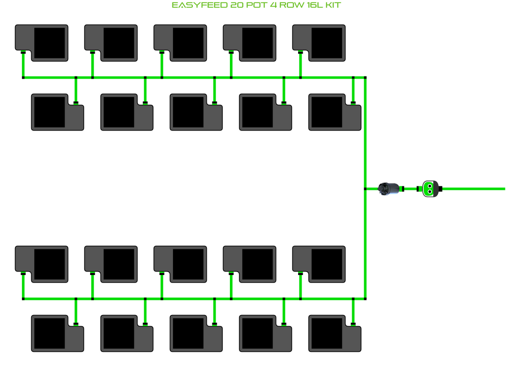 The ALIEN EasyFeed 20 Pot 4 Row Kit is available in 4 pot sizes. Easy to configure and assemble with advanced features and setup options including the ability to create an aisle in the middle of rows for complete plant access, grow 20 plants to perfection while bottom-feeding with scheduled dry-backs with this ALIEN EasyFeed Kit!