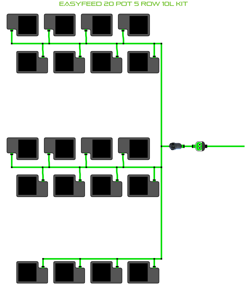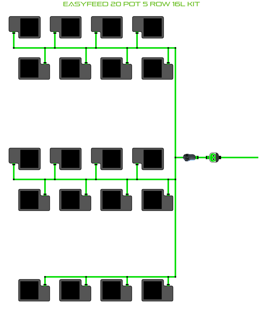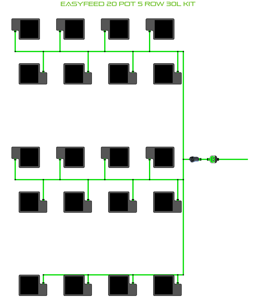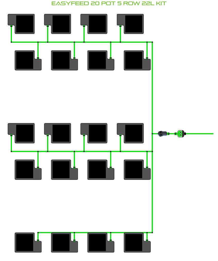 The ALIEN EasyFeed 20 Pot 5 Row Kit is available in 4 pot sizes. Easy to configure and assemble with advanced features and setup options including the ability to create an aisle in the middle of rows for complete plant access, grow 20 plants to perfection while bottom-feeding with scheduled dry-backs with this ALIEN EasyFeed Kit!