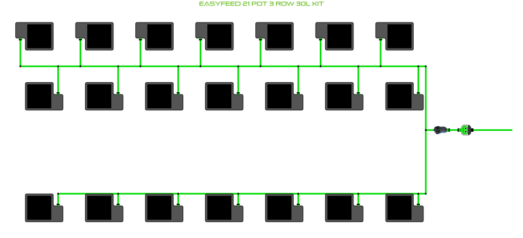 The ALIEN EasyFeed 21 Pot 3 Row Kit is available in 4 pot sizes. Easy to configure and assemble with advanced features and setup options including the ability to create an aisle in the middle of rows for complete plant access, grow 21 plants to perfection while bottom-feeding with scheduled dry-backs with this ALIEN EasyFeed Kit!