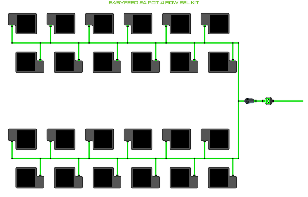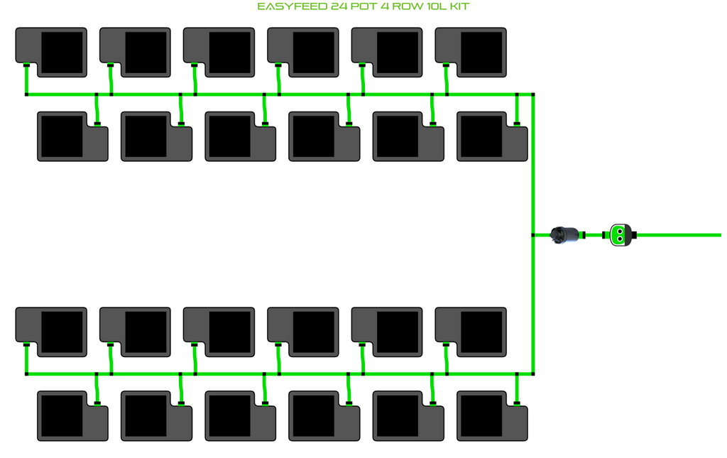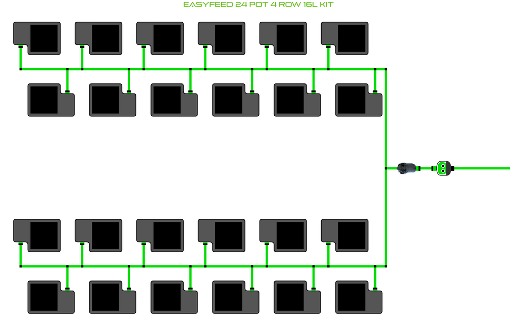 The ALIEN EasyFeed 24 Pot 4 Row Kit is available in 4 pot sizes. Easy to configure and assemble with advanced features and setup options including the ability to create an aisle in the middle of rows for complete plant access, grow 24 plants to perfection while bottom-feeding with scheduled dry-backs with this ALIEN EasyFeed Kit!