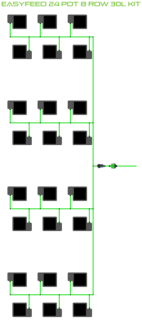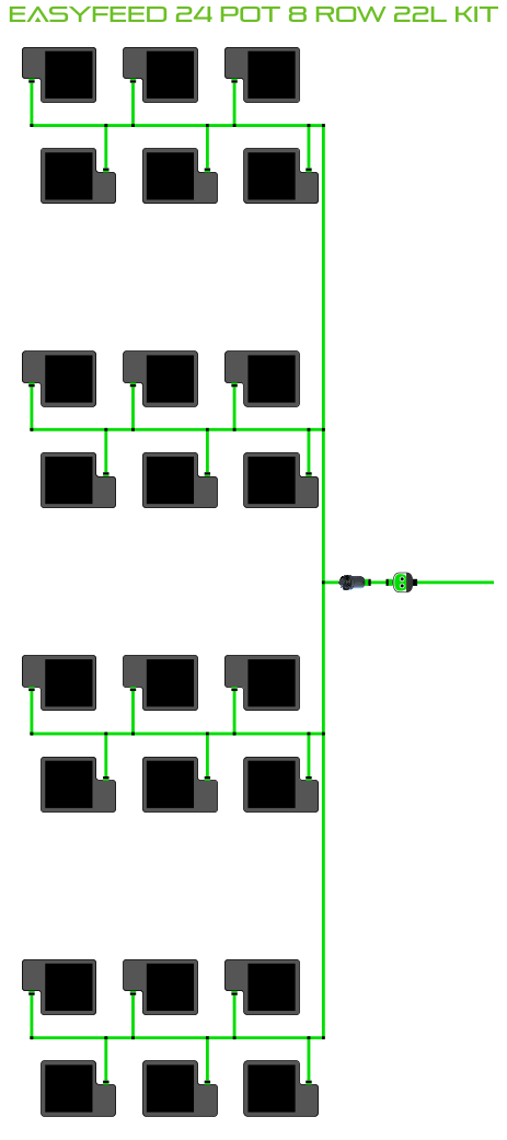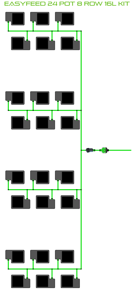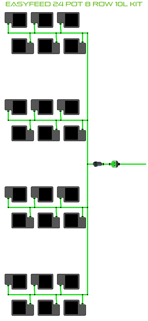 The ALIEN EasyFeed 24 Pot 8 Row Kit is available in 4 pot sizes. Easy to configure and assemble with advanced features and setup options including the ability to create an aisle in the middle of rows for complete plant access, grow 24 plants to perfection while bottom-feeding with scheduled dry-backs with this ALIEN EasyFeed Kit!