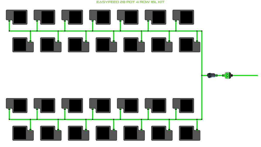 The ALIEN EasyFeed 28 Pot 4 Row Kit is available in 4 pot sizes. Easy to configure and assemble with advanced features and setup options including the ability to create an aisle in the middle of rows for complete plant access, grow 28 plants to perfection while bottom-feeding with scheduled dry-backs with this ALIEN EasyFeed Kit!
