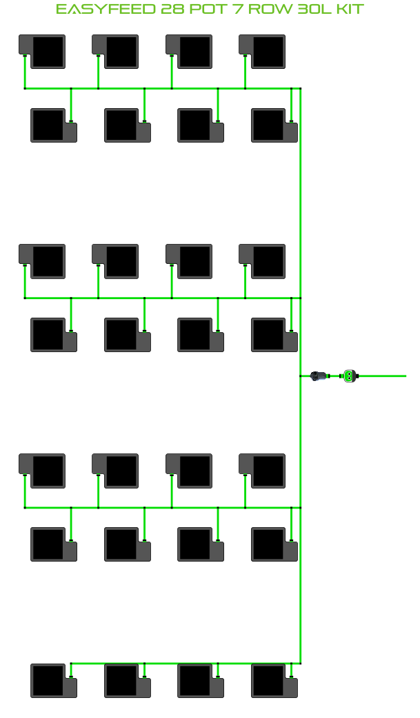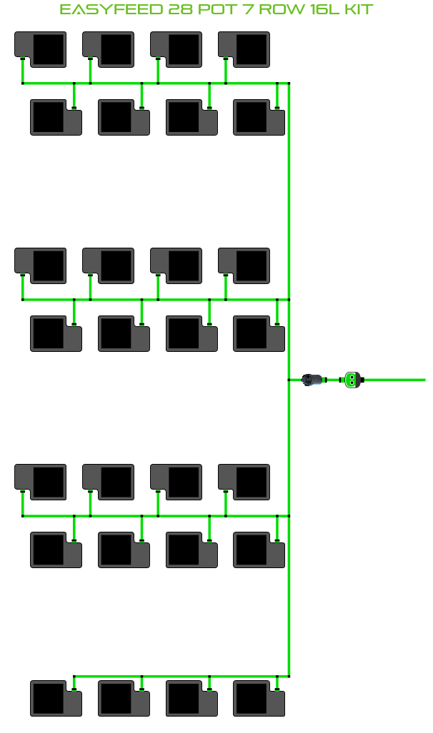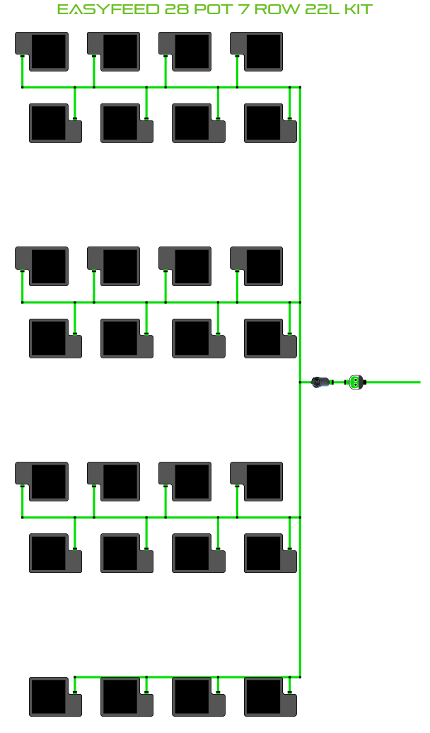 The ALIEN EasyFeed 28 Pot 7 Row Kit is available in 4 pot sizes. Easy to configure and assemble with advanced features and setup options including the ability to create an aisle in the middle of rows for complete plant access, grow 28 plants to perfection while bottom-feeding with scheduled dry-backs with this ALIEN EasyFeed Kit!
