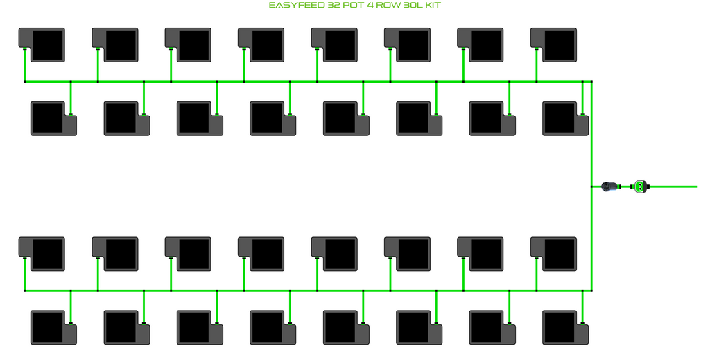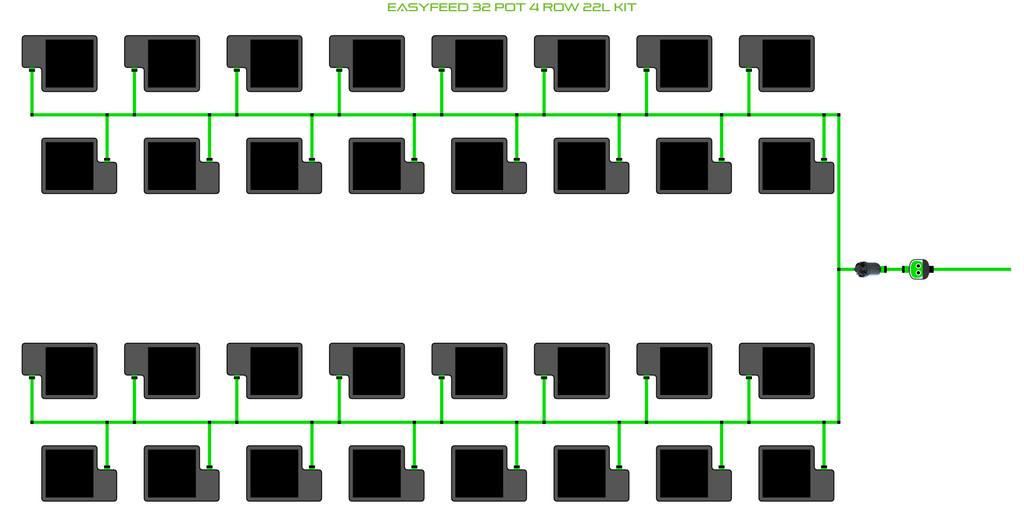 The ALIEN EasyFeed 32 Pot 4 Row Kit is available in 4 pot sizes. Easy to configure and assemble with advanced features and setup options including the ability to create an aisle in the middle of rows for complete plant access, grow 32 plants to perfection while bottom-feeding with scheduled dry-backs with this ALIEN EasyFeed Kit!