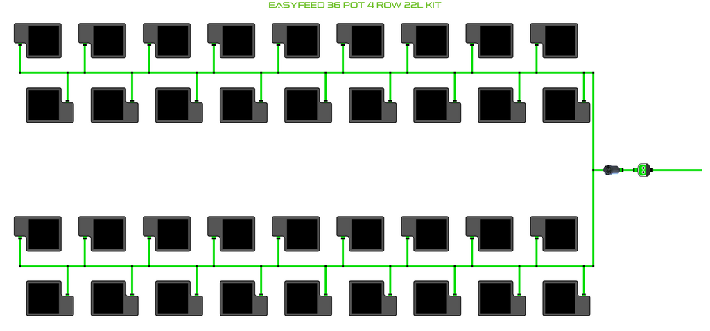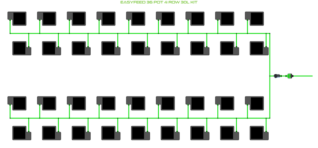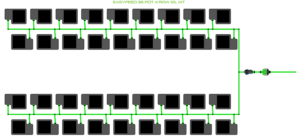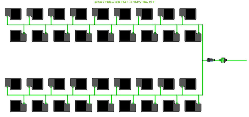 The ALIEN EasyFeed 36 Pot 4 Row Kit is available in 4 pot sizes. Easy to configure and assemble with advanced features and setup options including the ability to create an aisle in the middle of rows for complete plant access, grow 36 plants to perfection while bottom-feeding with scheduled dry-backs with this ALIEN EasyFeed Kit!