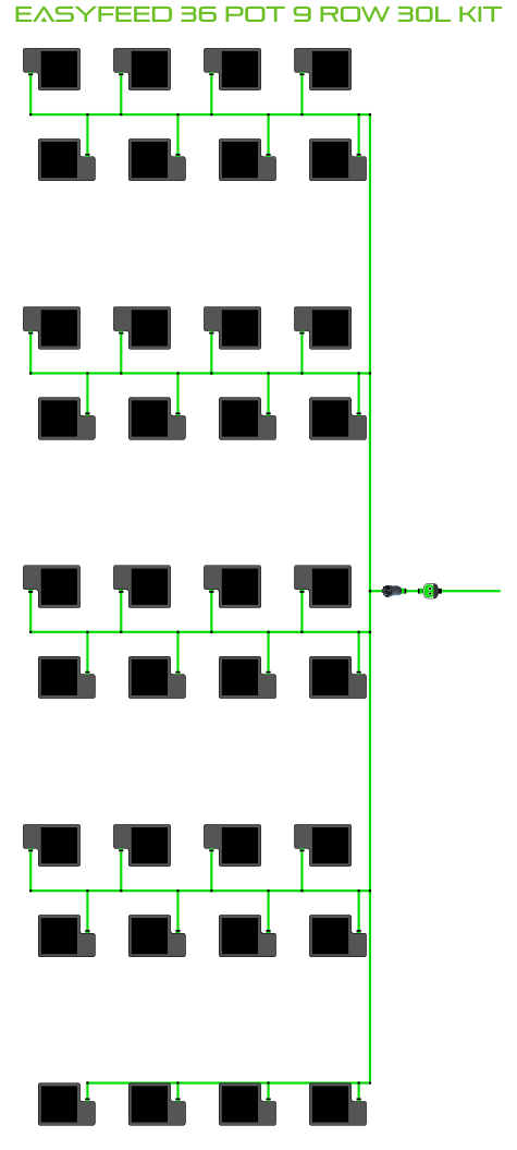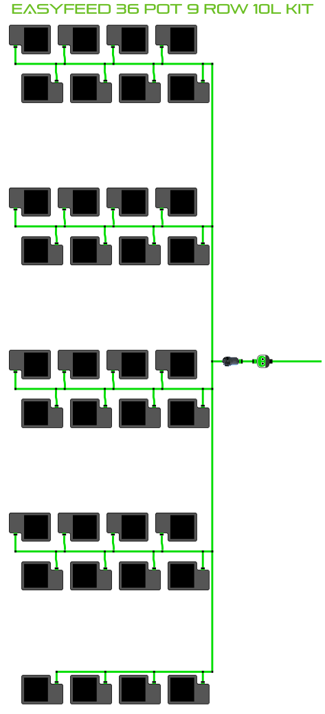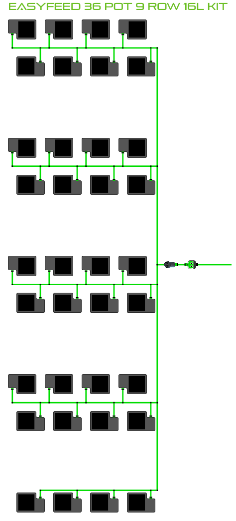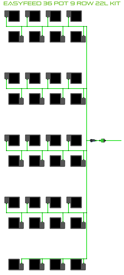 The ALIEN EasyFeed 36 Pot 9 Row Kit is available in 4 pot sizes. Easy to configure and assemble with advanced features and setup options including the ability to create an aisle in the middle of rows for complete plant access, grow 36 plants to perfection while bottom-feeding with scheduled dry-backs with this ALIEN EasyFeed Kit!