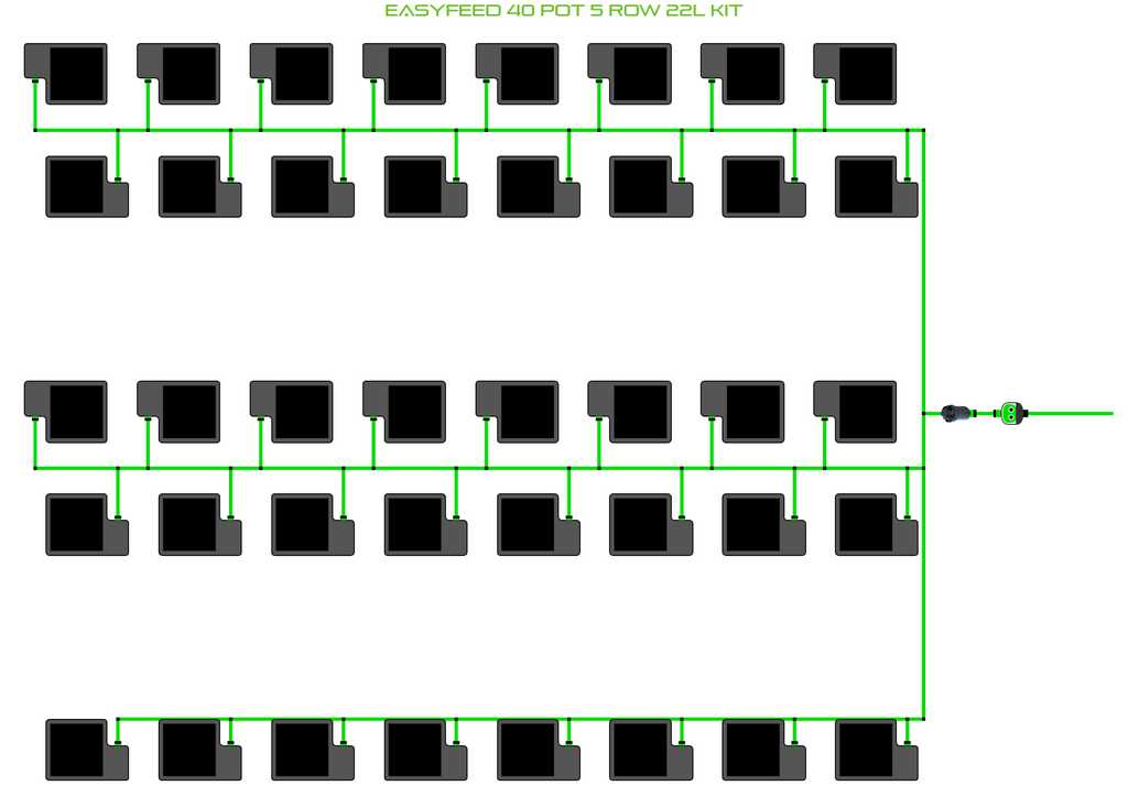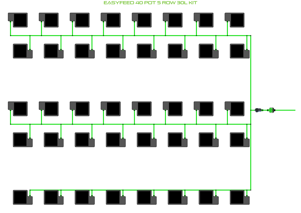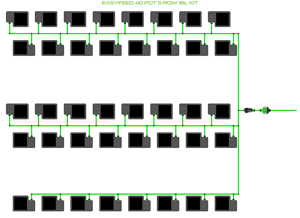 The ALIEN EasyFeed 40 Pot 5 Row Kit is available in 4 pot sizes. Easy to configure and assemble with advanced features and setup options including the ability to create an aisle in the middle of rows for complete plant access, grow 40 plants to perfection while bottom-feeding with scheduled dry-backs with this ALIEN EasyFeed Kit!