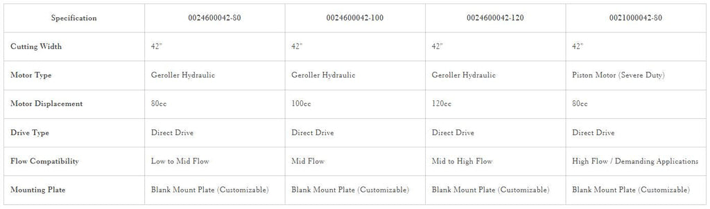 Motor Options – Choose from 80cc, 100cc, or 120cc Geroller hydraulic motors, or upgrade to a severe-duty 80cc piston motor for high-flow excavators.