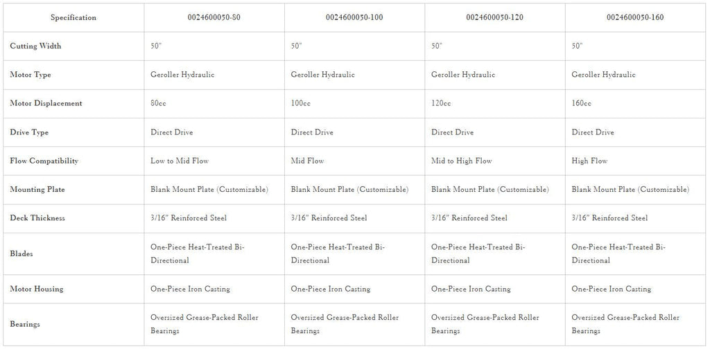 50" Width | 80cc–160cc Direct Drive | Bi-Directional Blades | For 3–10 Ton Mini Excavators