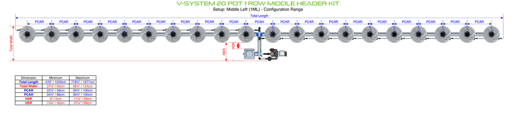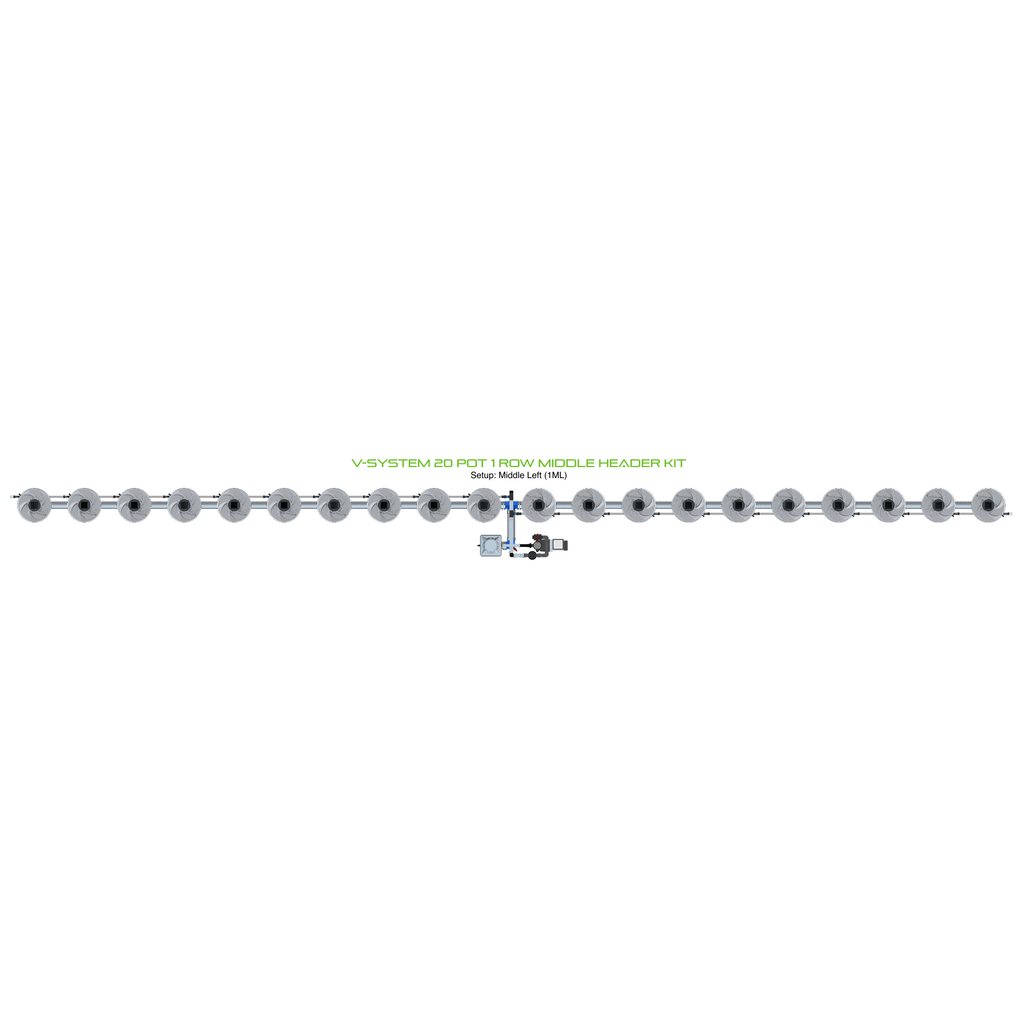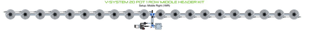 The ALIEN V-SYSTEM 20 Pot 1 Row Kit has 2 layout options for header and pump placement to best fit your grow area. The header and pump can be placed outside a grow tent / room, or made as compact as possible. Easy to configure and assemble with advanced features and setup options, grow 20 plants to perfection in the ultimate recirculating deep water culture with this ALIEN V-SYSTEM Kit!