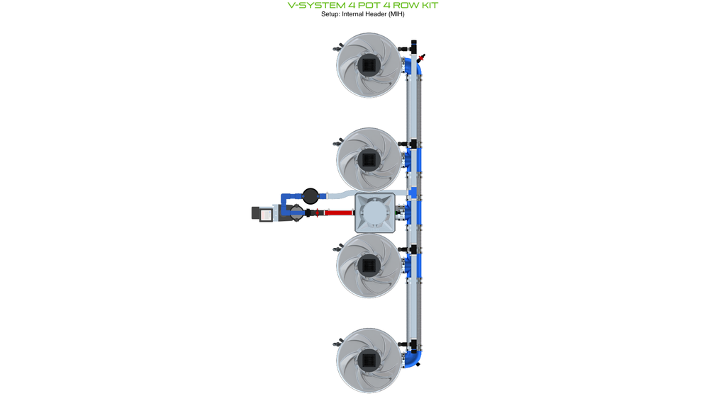 The ALIEN V-SYSTEM 4 Pot 4 Row Kit has 4 layout options for header and pump placement to best fit your grow area. The header and pump can be placed outside a grow tent / room, or made as compact as possible. Easy to configure and assemble with advanced features and setup options, grow 4 plants to perfection in the ultimate recirculating deep water culture with this ALIEN V-SYSTEM Kit!
